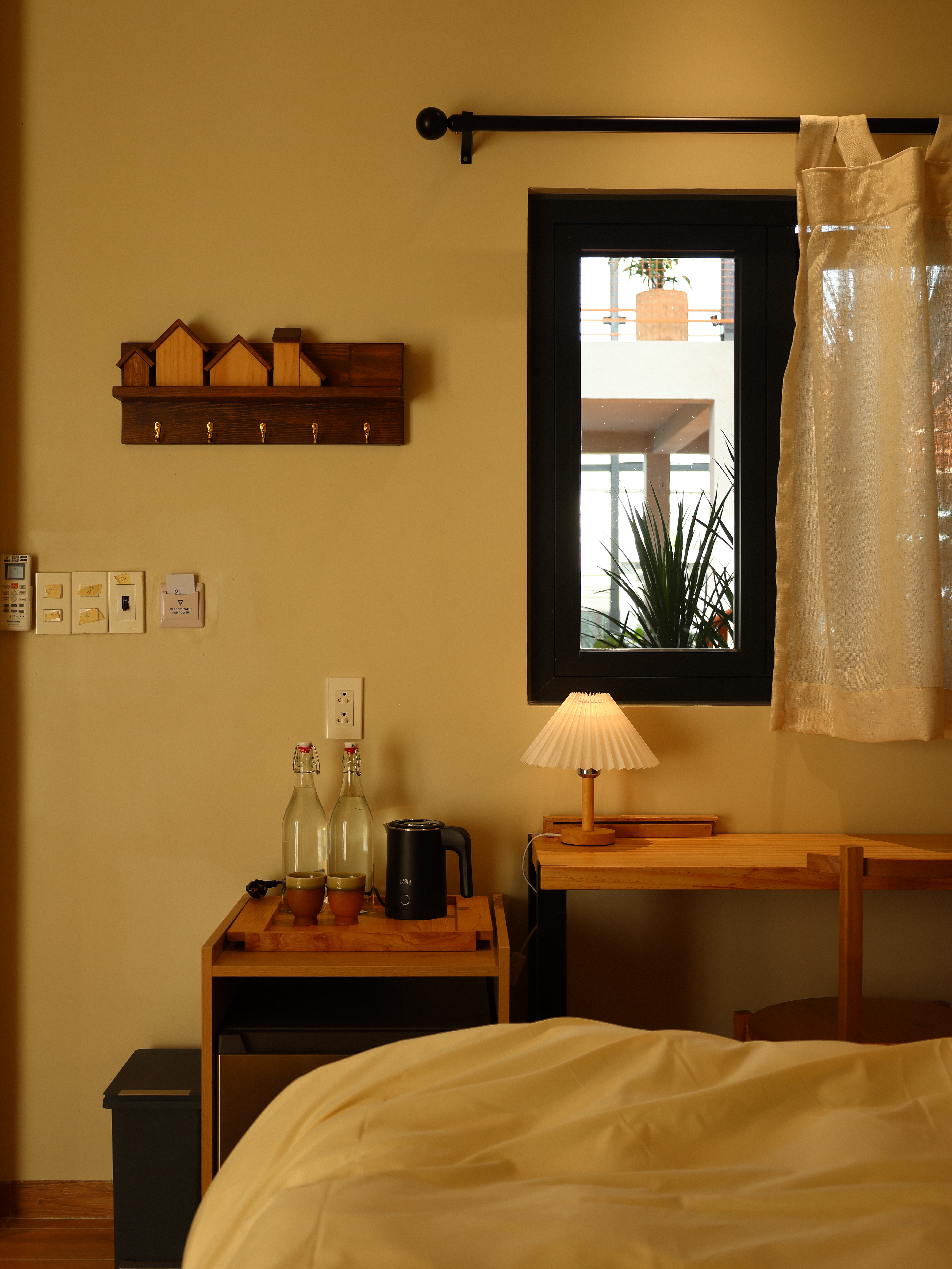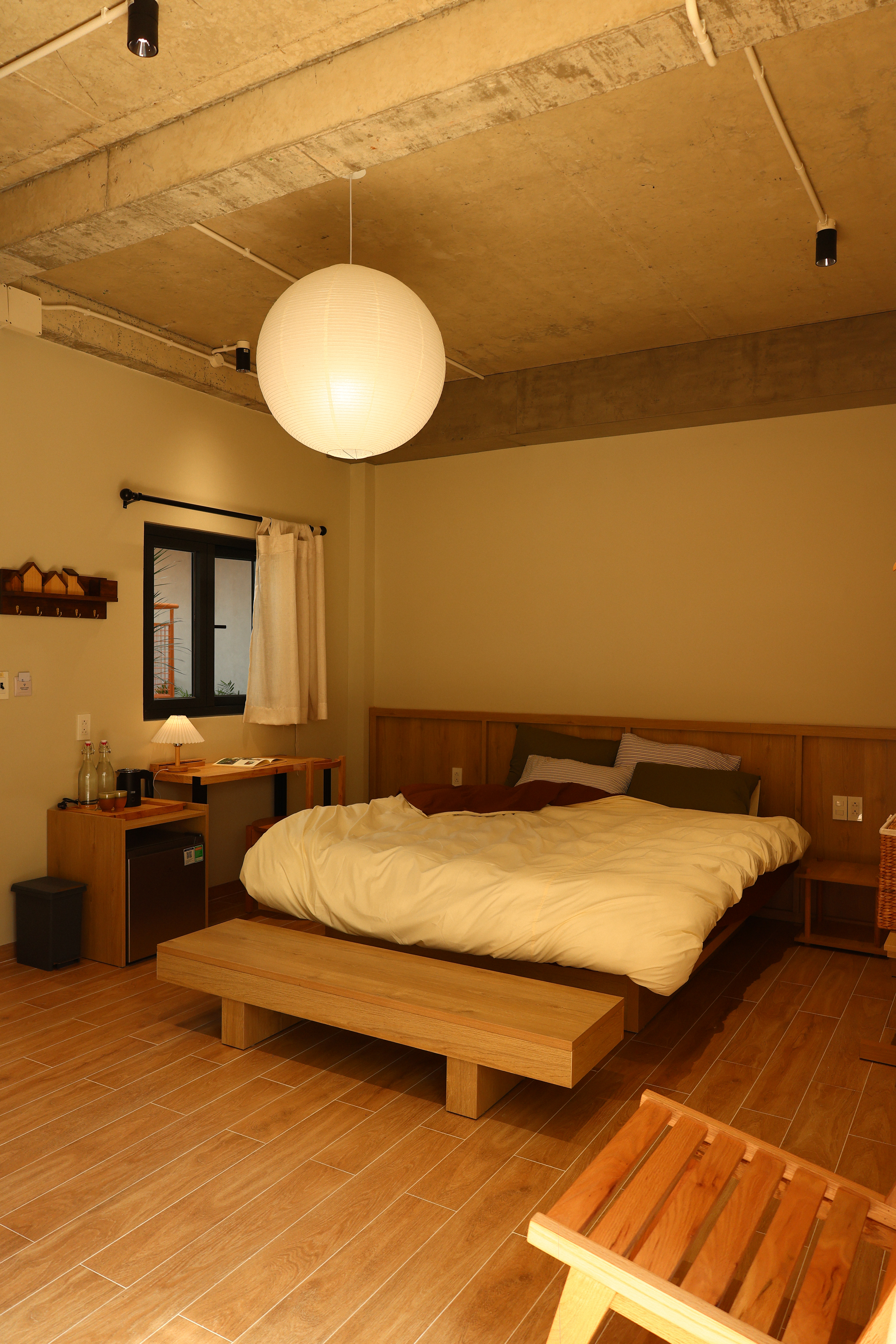 Yucca là loài cây sống bền bỉ, ít cần chăm sóc nhưng luôn giữ được dáng vẻ mạnh mẽ và yên tĩnh. Phòng Yucca được tạo ra cho những ai cần một nơi thật riêng – để chậm lại và nghỉ ngơi. Không gian gọn gàng, ánh sáng dịu, cảm giác tách biệt vừa đủ với phần còn lại của ngôi nhà.