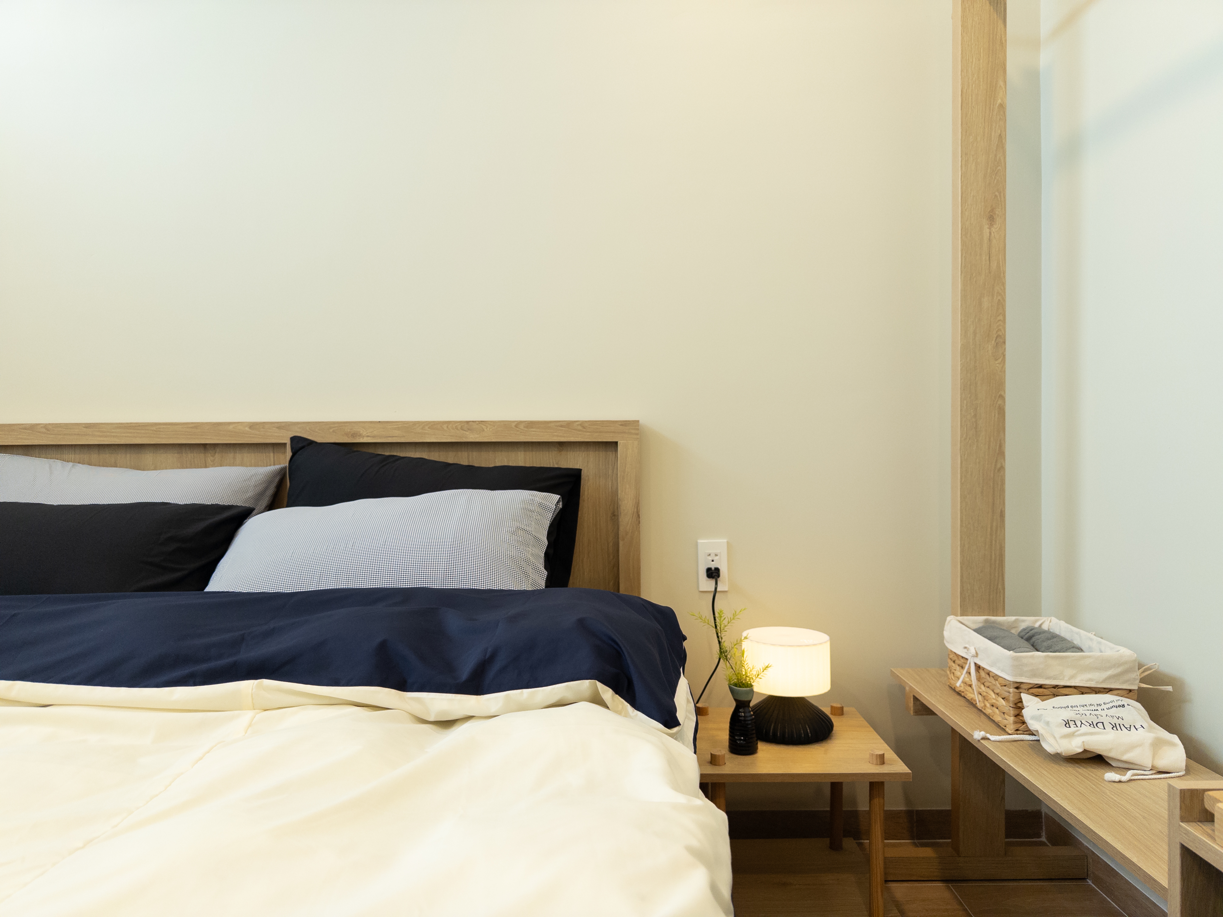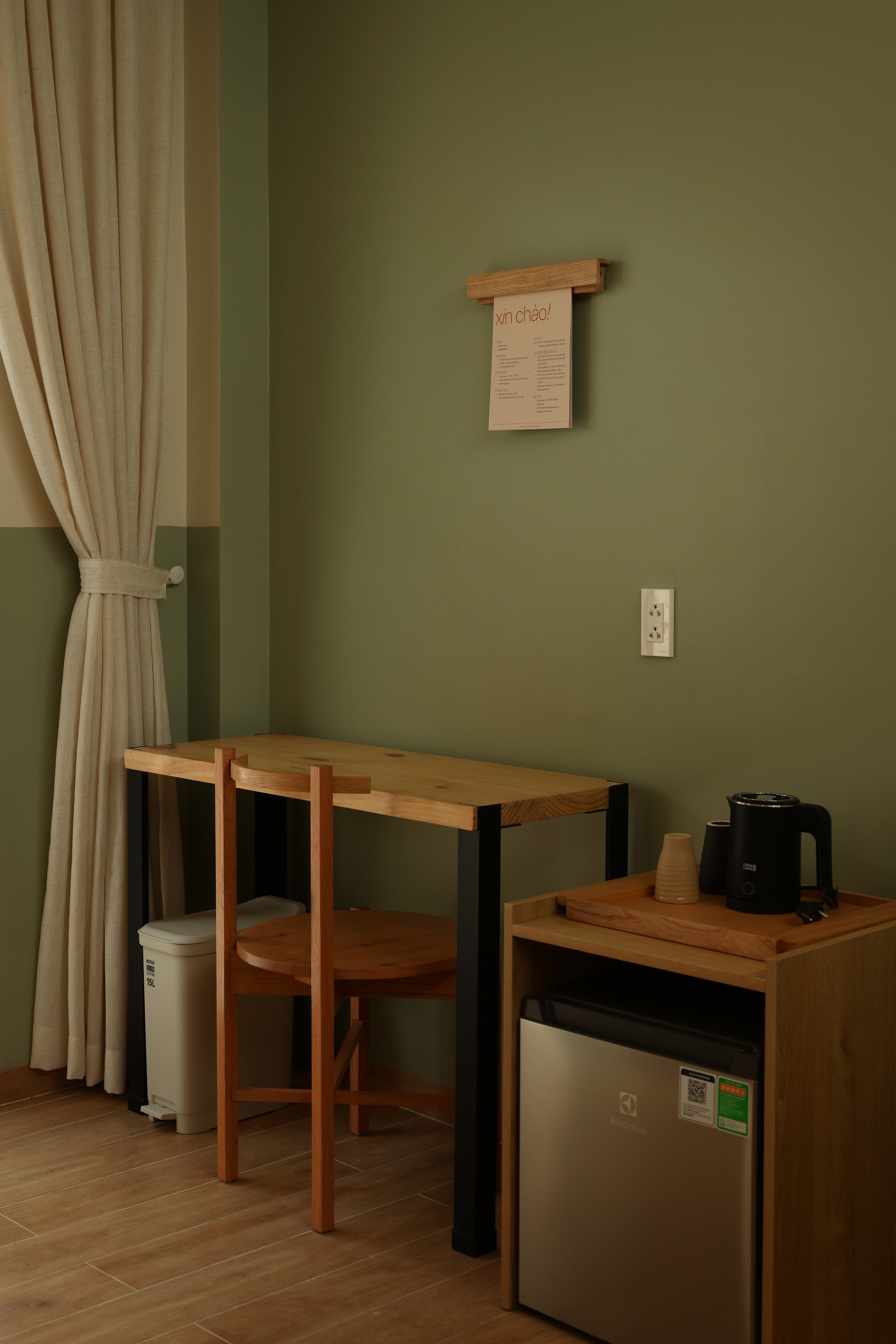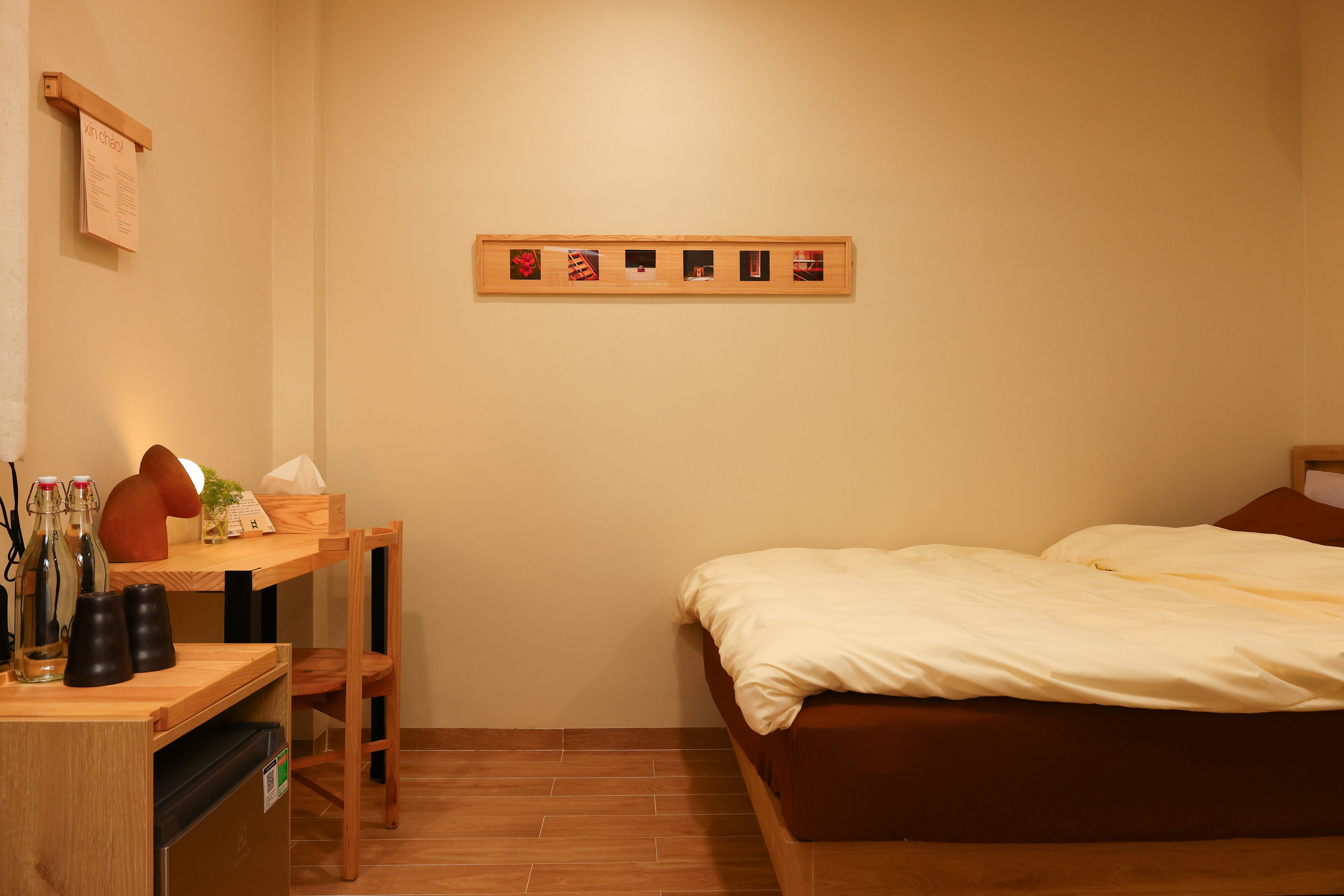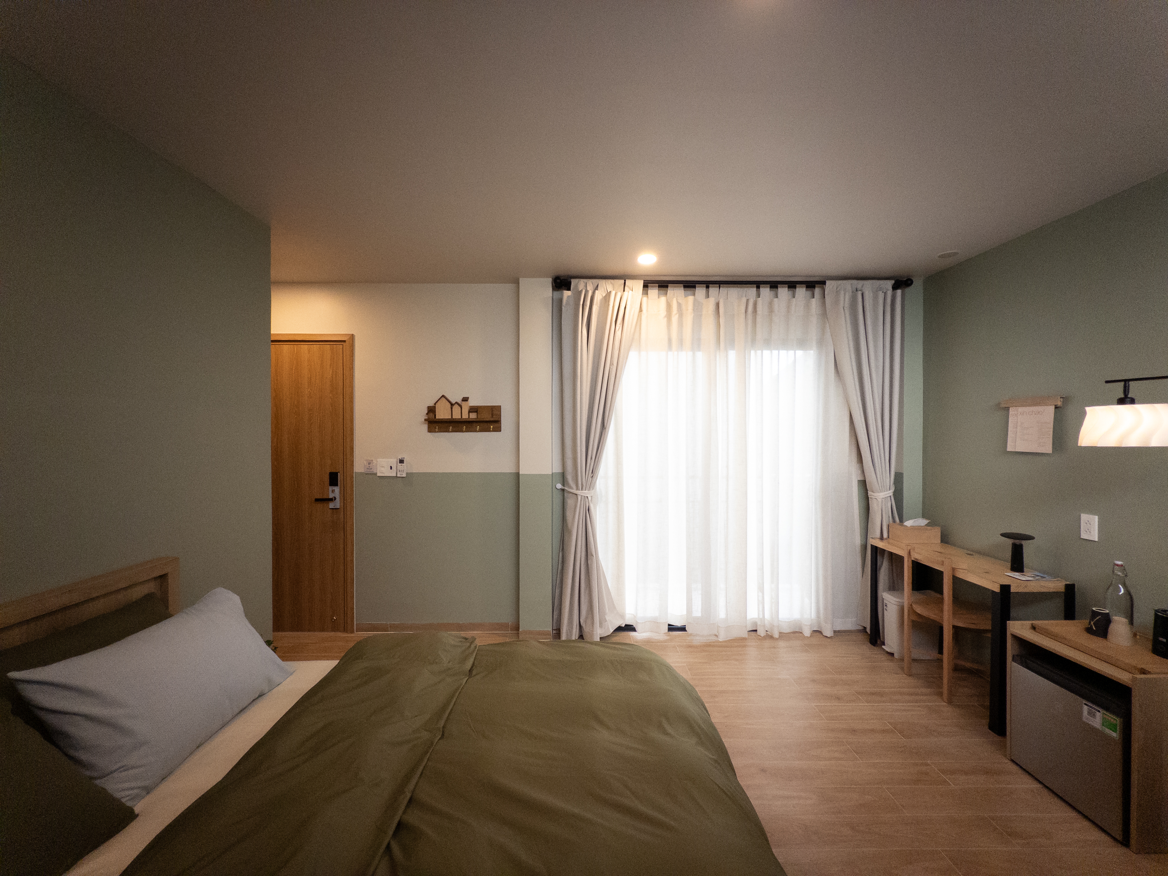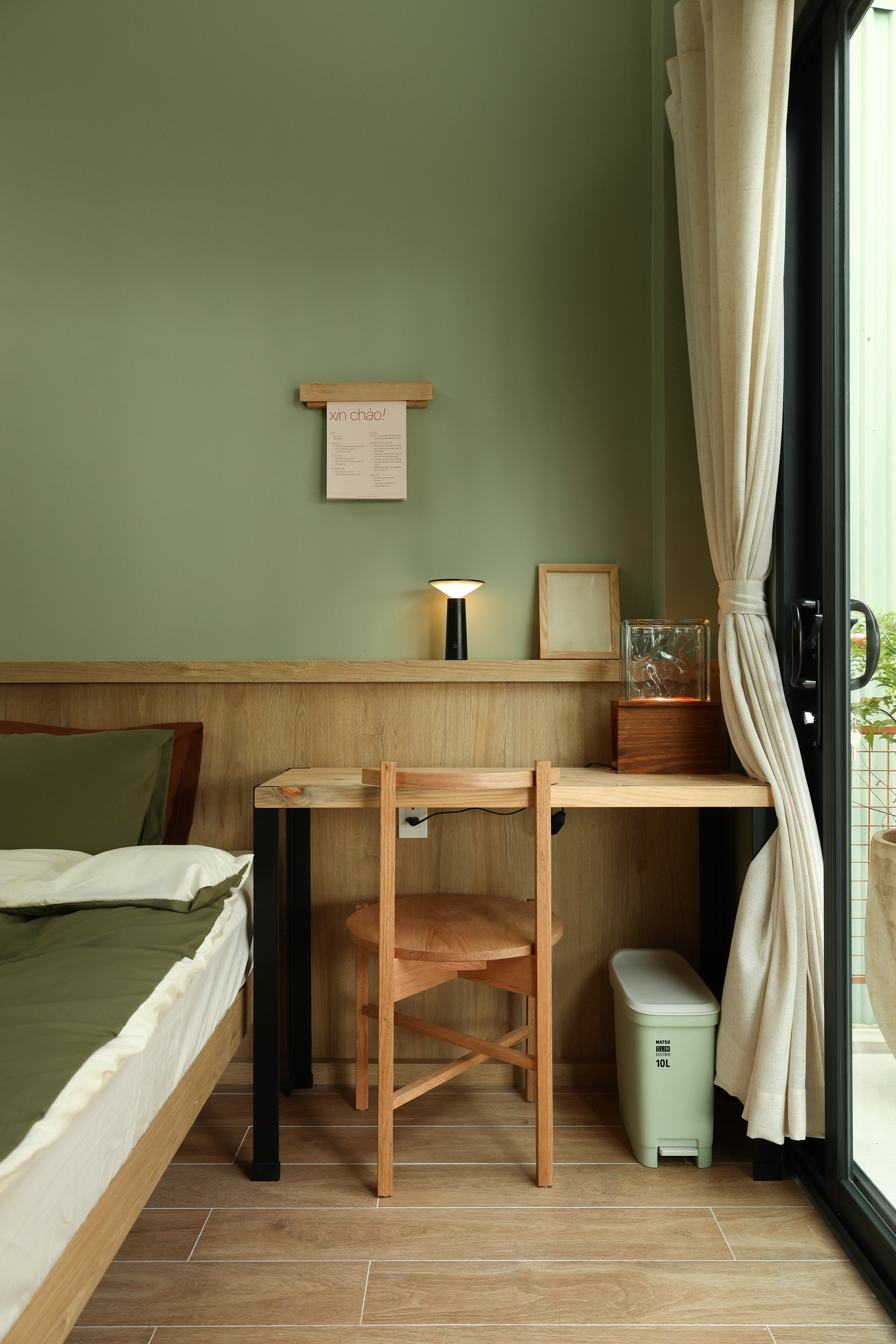 Quỳnh Giao mang sắc xanh mát, nhẹ nhàng nhưng không hề đơn điệu. Phòng Quỳnh Giao cũng vậy – cảm giác đầu tiên là sự dễ chịu, và càng ở lâu càng nhận ra những chi tiết tinh tế. Từng góc nhỏ được chăm chút vừa đủ để tạo nên sự khác biệt. Quỳnh Giao là căn phòng dành cho những ai yêu vẻ đẹp giản dị, nhưng không hề hời hợt.