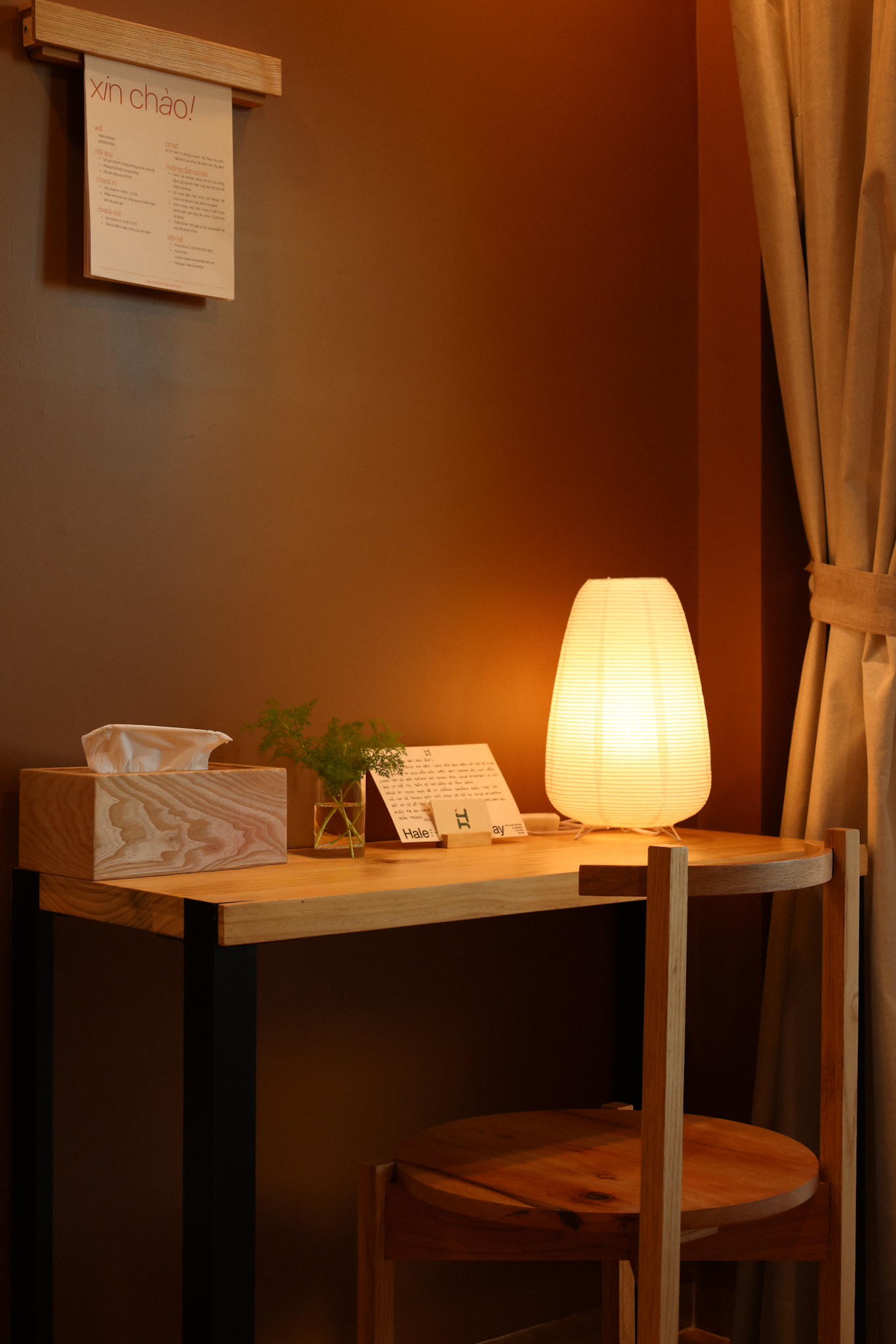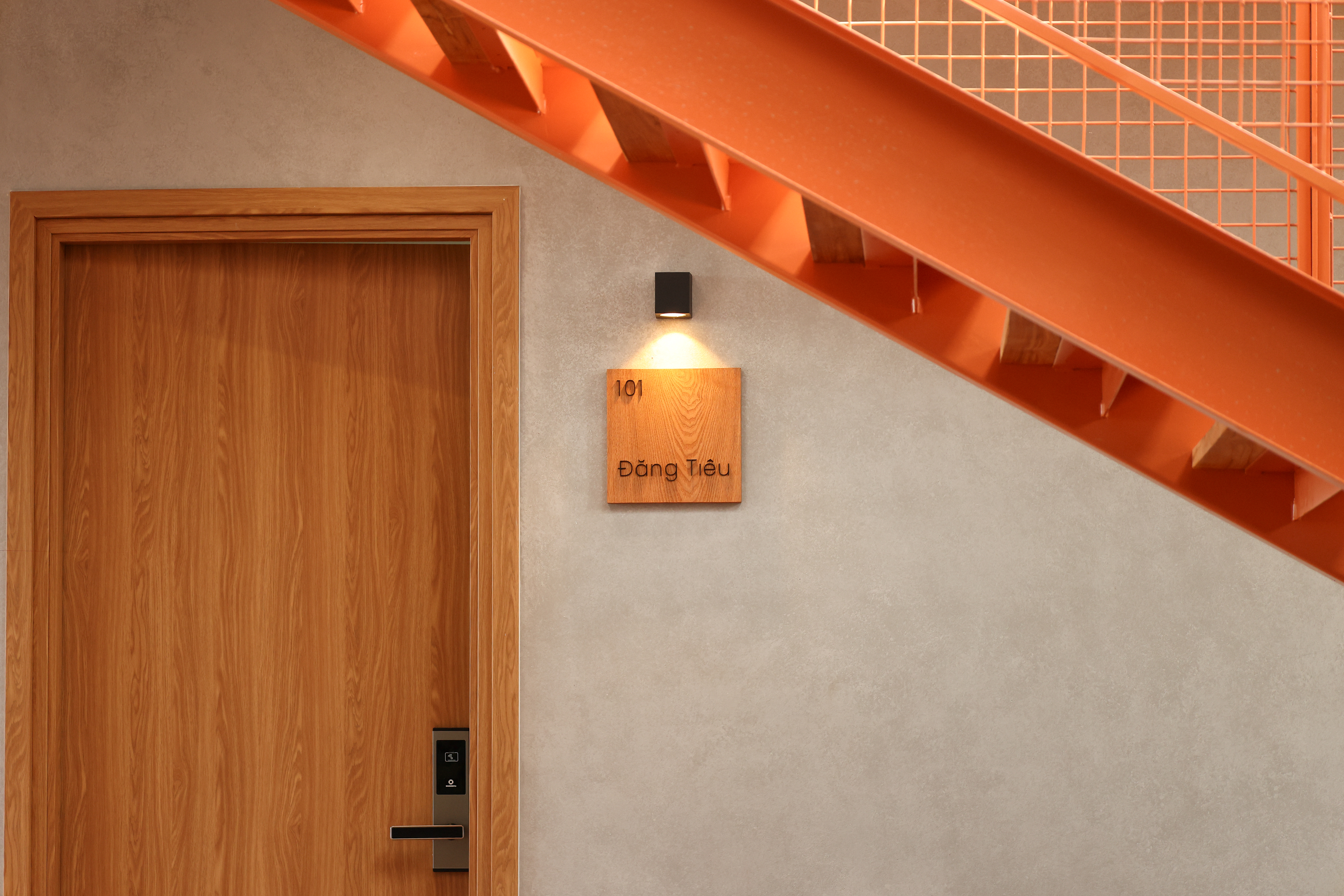 Đăng Tiêu là loài dây leo mang những chùm hoa cam rực rỡ, vươn mình theo ánh sáng.Căn phòng Đăng Tiêu lấy cảm hứng từ chính sự chuyển động ấy – nhẹ nhàng, tươi sáng và đầy sức sống.Gam cam được sử dụng như một điểm nhấn tinh tế, gợi nhớ hình ảnh điểm nhấn “chiếc thang trung tâm” của Hale – nơi mọi lối đi đều gặp nhau.